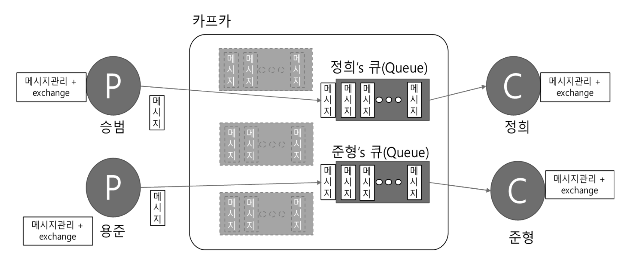- 카프카 내부에선 큐만 관리 -> 빠를 수 밖에 없음