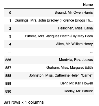 # print(type(titan_df['Name'])) => [] 1차원 <class 'pandas.core.series.Series'>