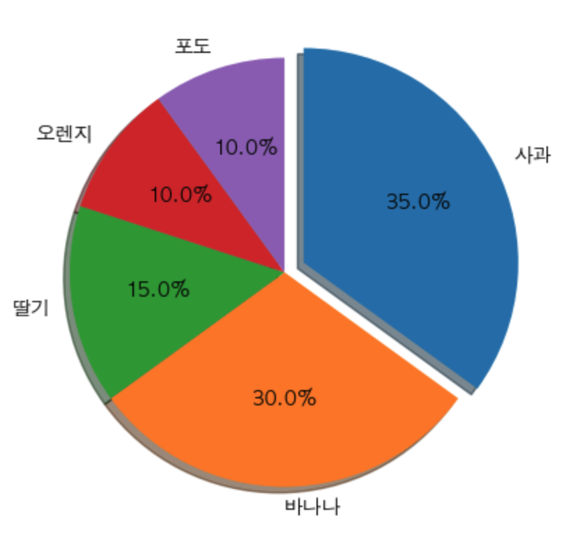 explode_value = (0.1, 0,0,0,0) # 1번째 요소 0.1 만큼 파이에서 나오게