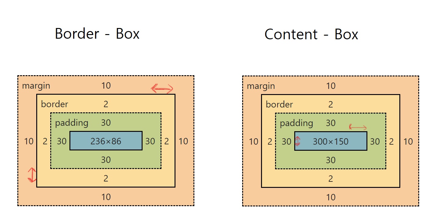 content-box : width로 지정하는 범위가 컨텐츠 영역의 너비로 사용(dafault)