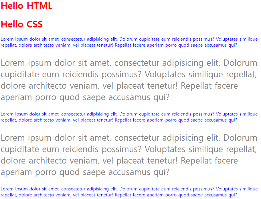 .lorem{color: grey; font-size: 30px} /* 3) 클래스 선택자 */