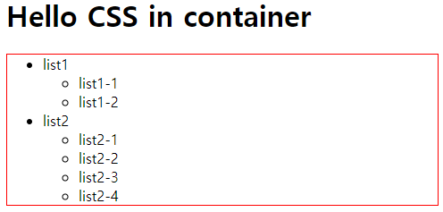#container > ul{border: 1px solid red;} /* > 를 사용하여 바로 아래자식인 ui에게 만 사용 */