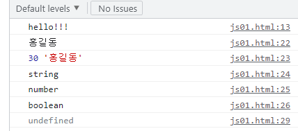 console.log(typeof name); // 해당 변수의 타입 리턴
