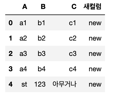df.columns = ["New A", "New B", "New C"] # 이미 생성된 컬럼수와 입력하는 컬럼수가 같아야함