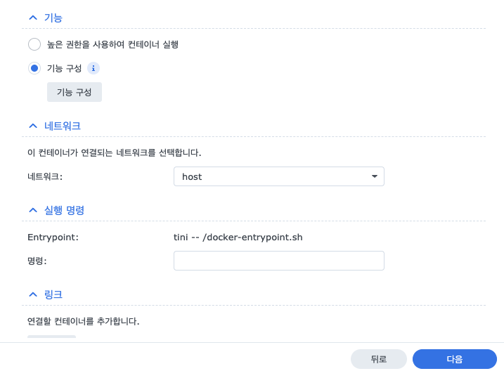 1. 자동 재시작 활성화 체크(나스가 재부팅 될때, 해당 컨테이너도 같이 재부팅)