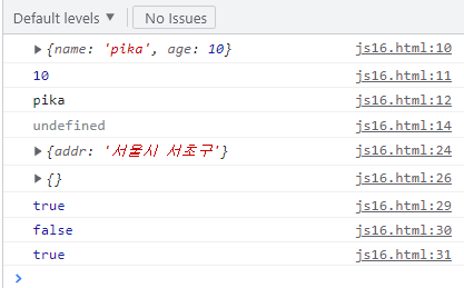 console.log(user.test); // 없는 프로퍼티 읽으려하면 undefined 리턴함.